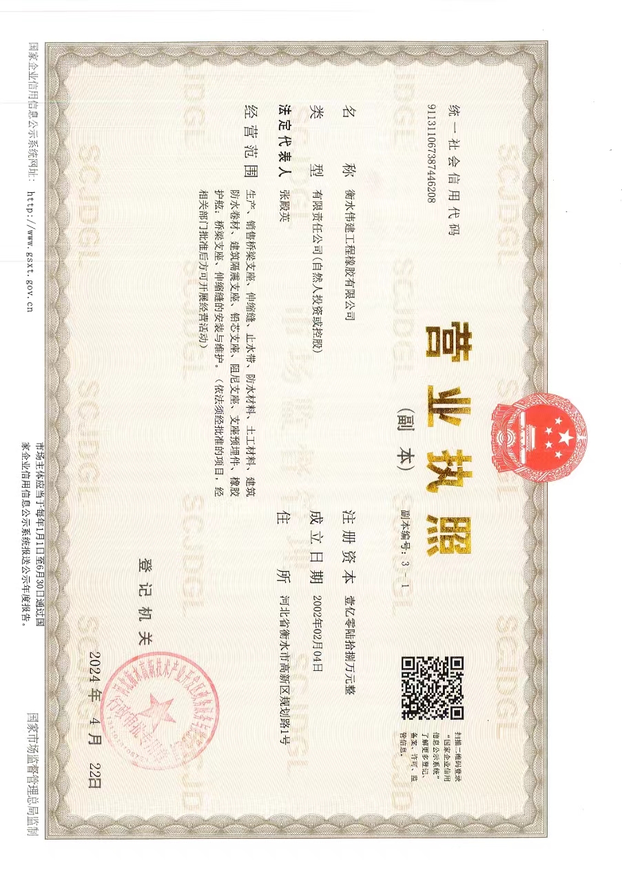 衡水偉建工程橡膠有限公司位于河北省衡水市高新區(qū)規(guī)劃路1號(hào),成立于2002年,占地面積二萬六千平方米。